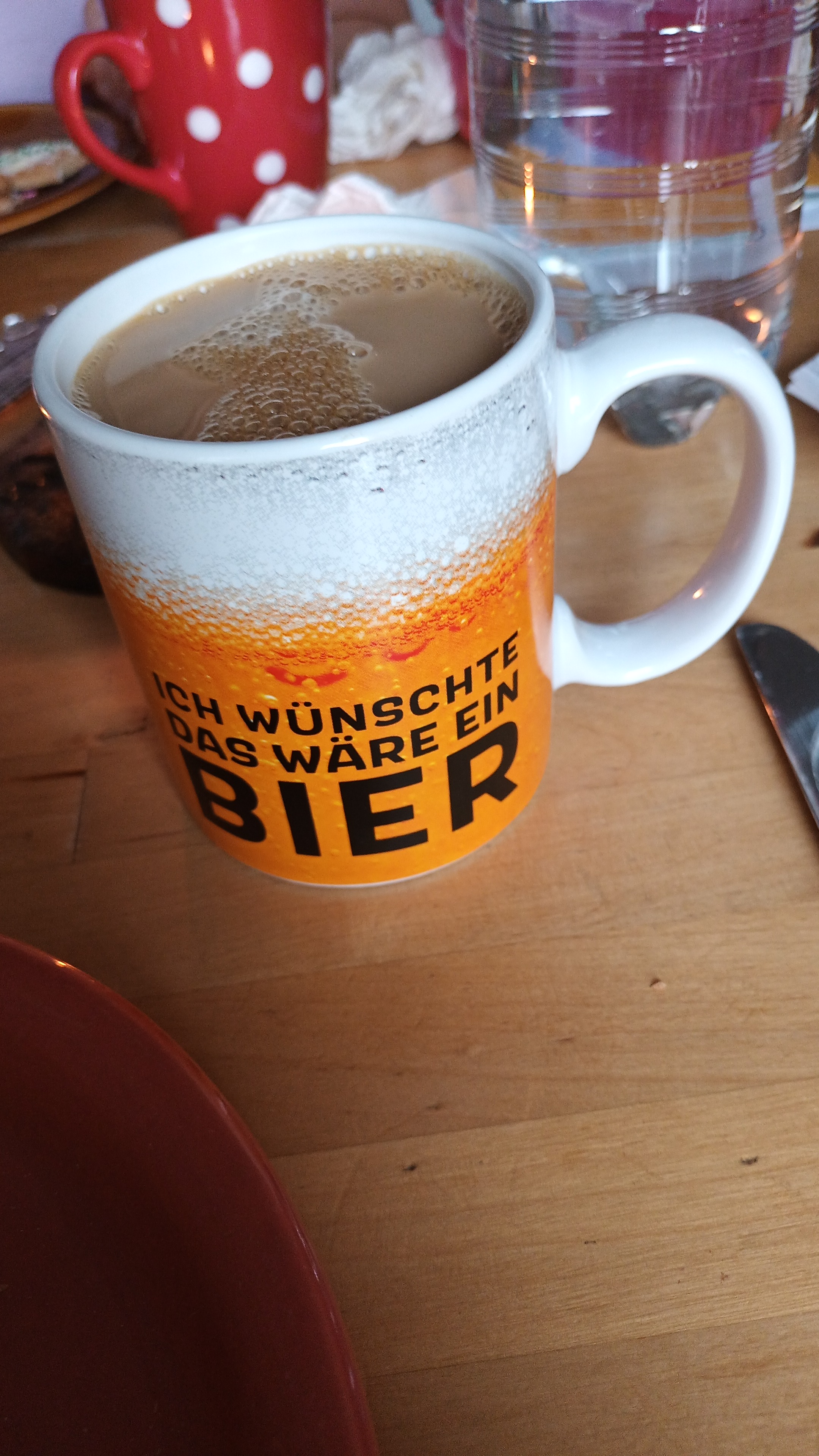 Es legt sich cremiger, stabiler Schaum mit cremegelber Farbe obendrauf.