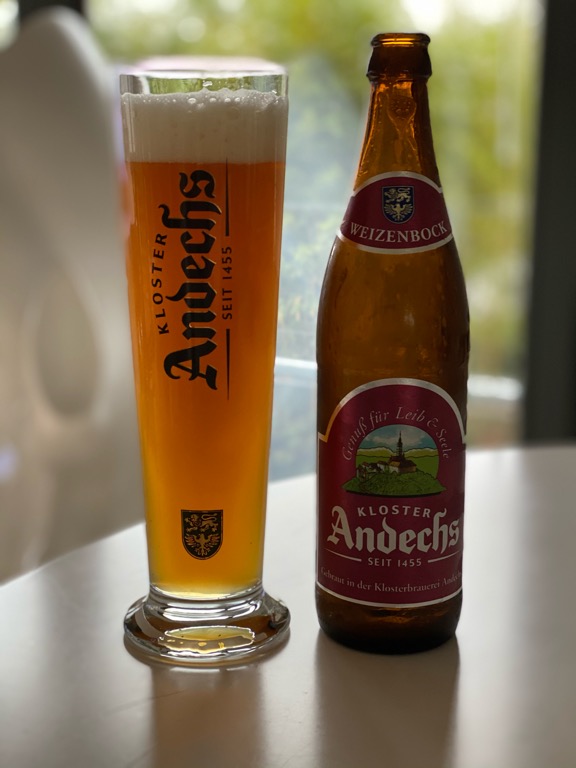 Non-alcoholic beer mixed drink made from 55% Andechser apple spritzer and 45% Andechser non-alcoholic wheat beer.
